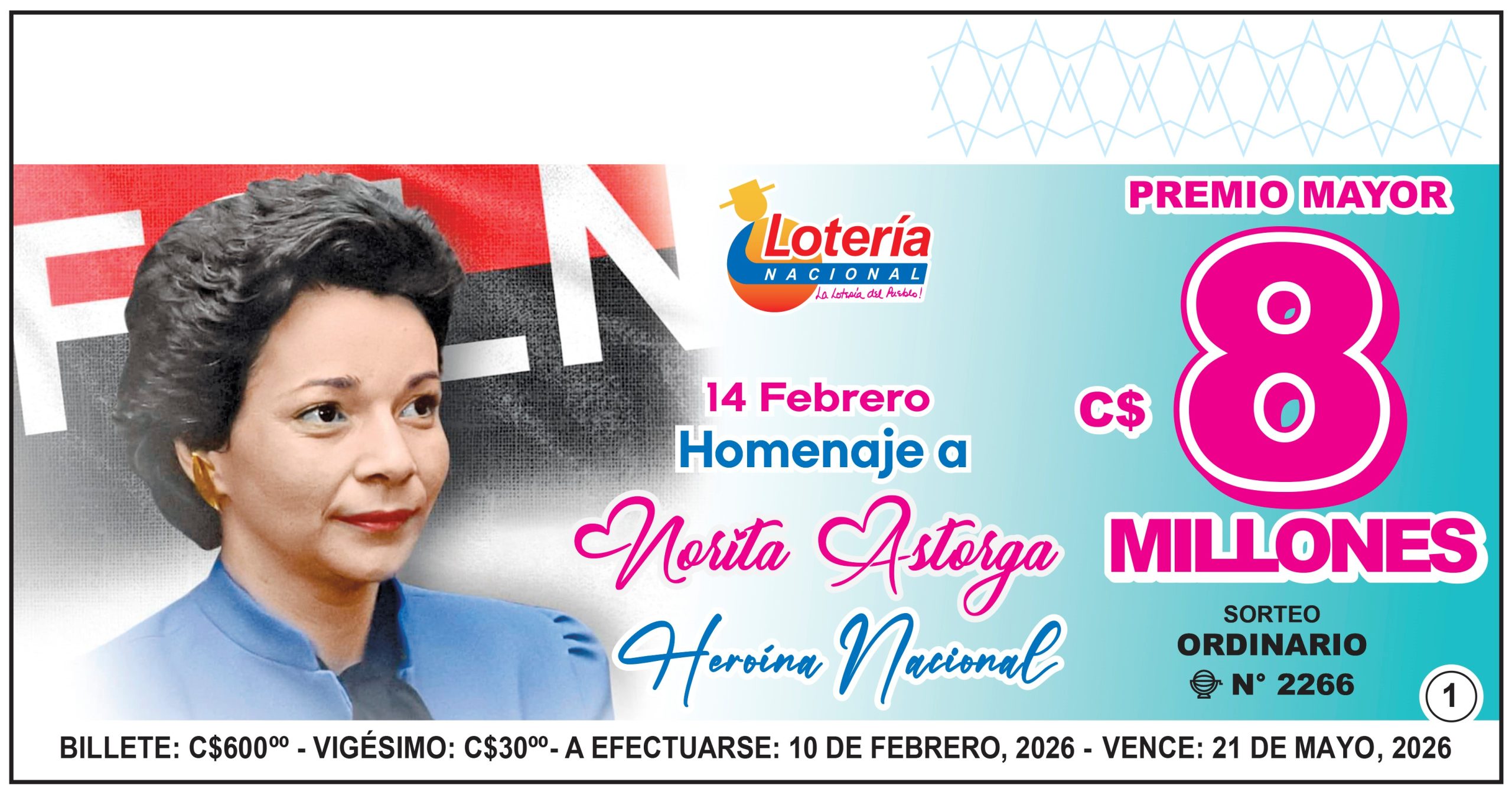 Lotería Nacional informa que el Sorteo Ordinario N°2262, verificado el día Martes 13 de enero de 2026, cuyo Premio Mayor fue de 8 millones de...