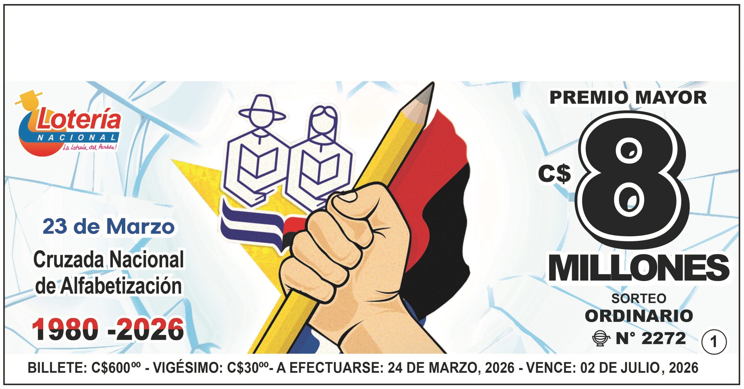 Lotería Nacional informa que el Sorteo Ordinario N°2270, verificado el día Martes 10 de marzo de 2026, cuyo Premio Mayor fue de 8 millones de...