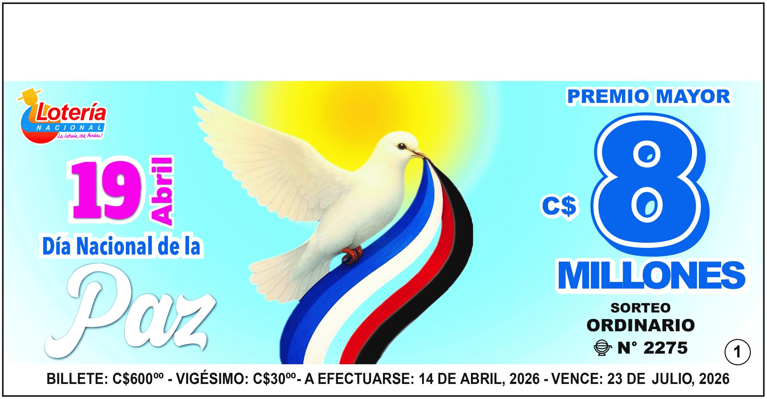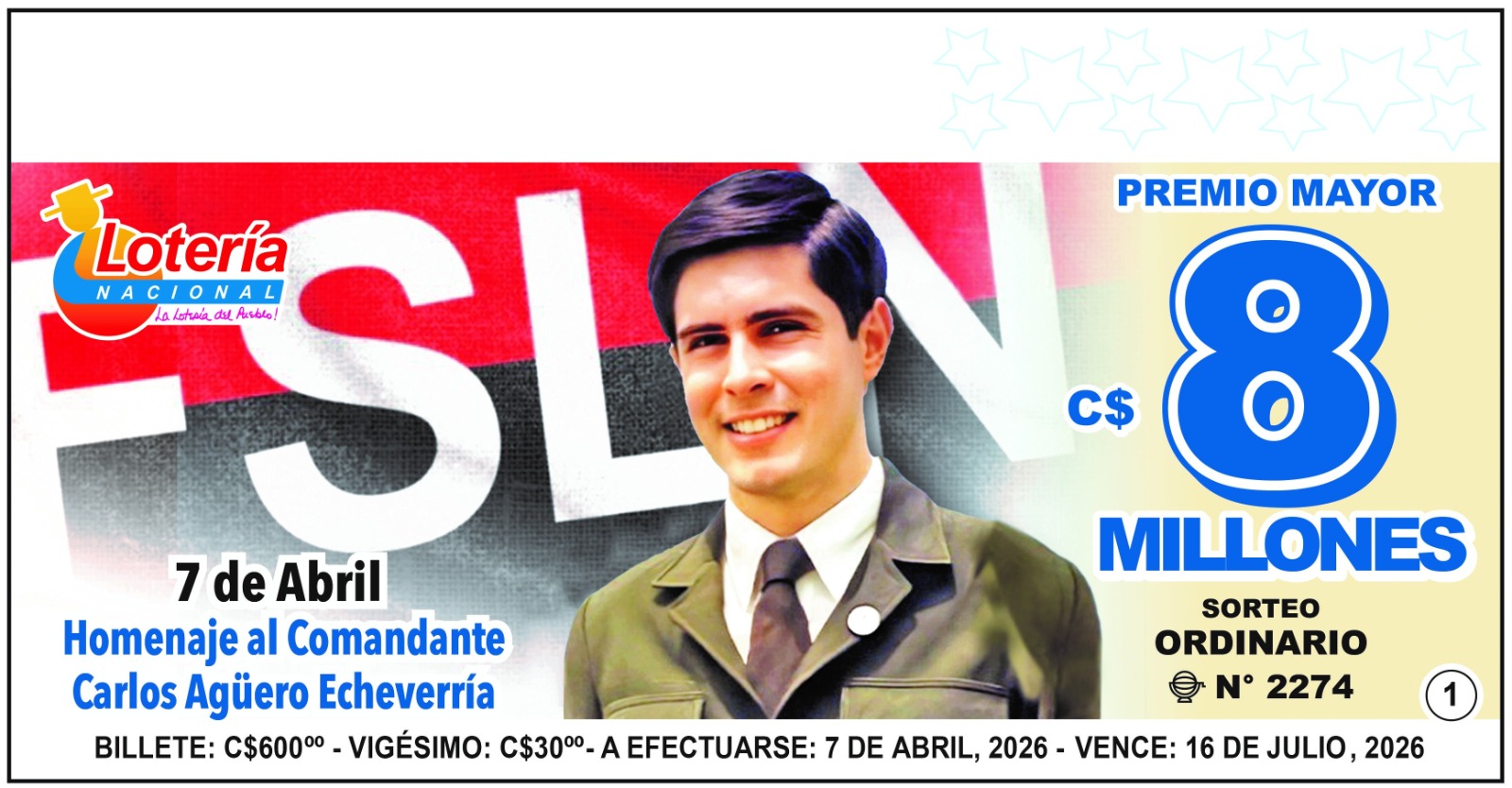 Lotería Nacional informa que el Sorteo Ordinario N°2272, verificado el día Martes 24 de marzo de 2026, cuyo Premio Mayor fue de 8 millones de...