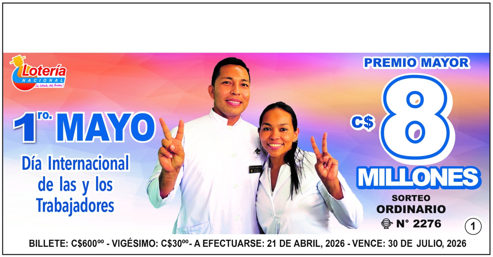 Lotería Nacional informa que el Sorteo Ordinario Acumulado N°2274, verificado el día Martes 7 de abril de 2026, cuyo Premio Mayor fue de 14 millones...